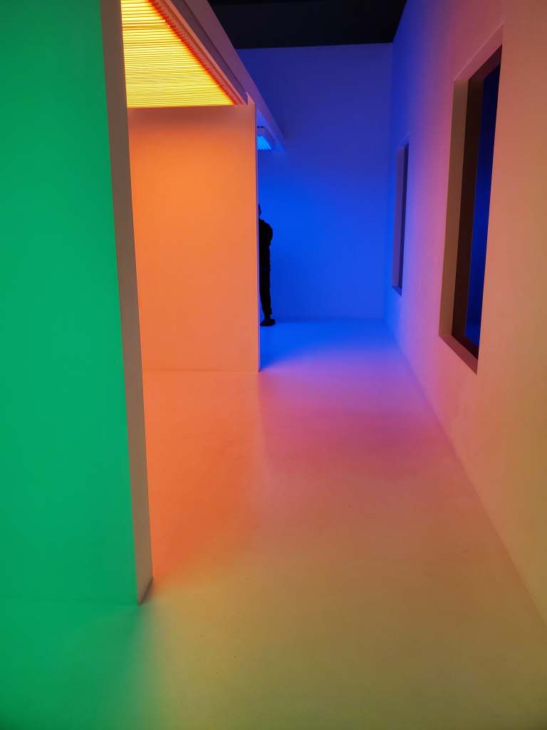 “This experience creates disturbances in the retina, accustomed to receive wide range of colors simultaneously. The Chromosaturation can act as a trigger, activating in the viewer the notion of color as a material or physical situation, going into space without the aid of any form or even without any support, regardless of cultural beliefs.” The colors did feel more solid and physical than just light. I felt like every room had its own presence.