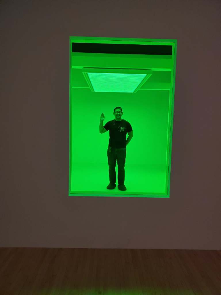 This next artwork was more of an interactive one. We had to put on these shoe covers to prevent dirt or any debris from getting in the artworks space. The whole place was drywall with fluorescent lights and colored plastic. Each room was a different color. I liked how simple the presentation was but it made me feel different in each room. The colors gave me a different mood, from cool blue to dangerous red. The green one just felt very earthy.